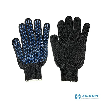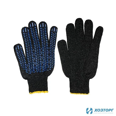 Перчатки ХБ с ПВХ 10 класс 5-нитка Черные синяя точка цена за пару (10/400)