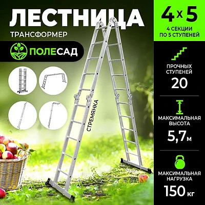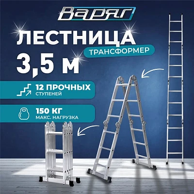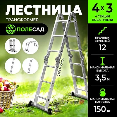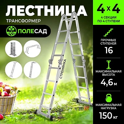 Лестница-трансформер GRASSMAN 4*4, высота 4,6 м, масса 12 кг, нагрузка до 150 кг (1/12)