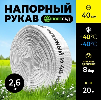 Рукав напорный, диаметр 40 мм, намотка 20м, для насосов и мотопомп ПОЛЕСАД РН-4020 (1/240)