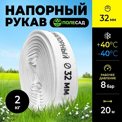 Рукав напорный, диаметр 32 мм, намотка 20м, для насосов и мотопомп ПОЛЕСАД РН-3220 (1/270)