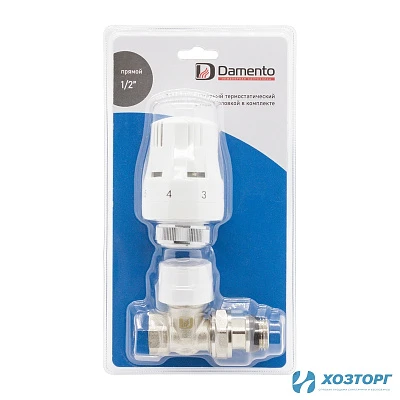 Клапан радиаторный термостатический прямой с уплотнительным кольцом с термоголовкой 1/2" В-Н Damento Clima (1/12)