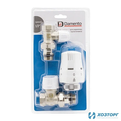 Термостатический комплект для радиатора прямой (термоклапан, клапан нижний, термоголовка) 1/2" В-Н Damento Clima (1/12)