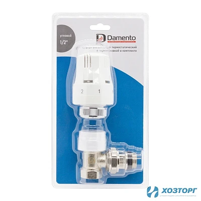 Клапан радиаторный термостатический угловой с уплотнительным кольцом с термоголовкой 1/2" В-Н Damento Clima (1/12)
