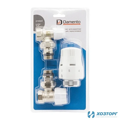 Термостатический комплект для радиатора угловой (термоклапан, клапан нижний, термоголовка) 1/2" В-Н Damento Clima (1/12)