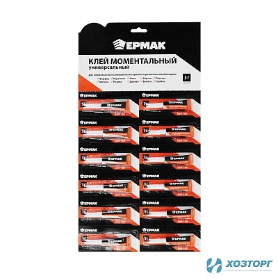 Клей 3г моментальный универсальный, большая карта, в блистере 12 шт ЕРМАК 669-160 (12/480)