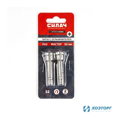 Биты с ограничителем СИЛАЧ МАСТЕР 50РН2, сталь S2, длина 50 мм, магнитные, 2шт/уп, цена за блистер (30/300)
