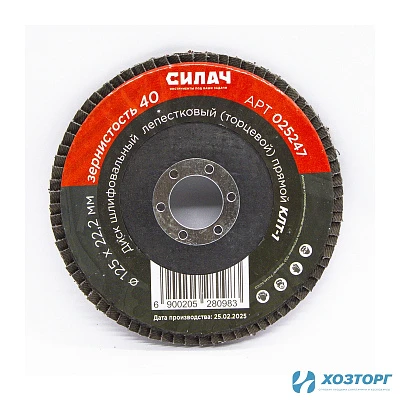 Диск шлифовальный СИЛАЧ лепестковый торцевой 125х22,2 зерно 40, КЛТ-1(прямой) (5/200)