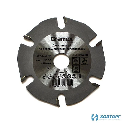 Диск пильный по дереву, пластику, гипсокартону 125х22,2 6T для УШМ GRAMEX SpeedCutter (1/100)
