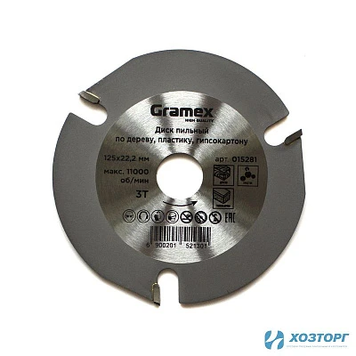 Диск пильный по дереву, пластику, гипсокартону 125х22,2 3T для УШМ GRAMEX SpeedCutter (1/100)