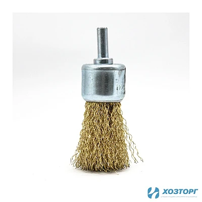 Щетка для дрели СИЛАЧ 25мм, кистевая, волнистая, стальная латунированная проволока 0,3мм (1/200)