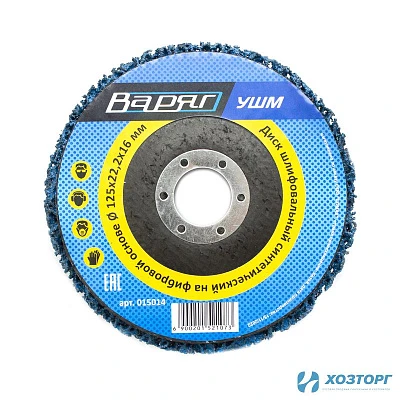 Диск шлифовальный 125х22,2х16 мм синтетический на фибровой основе, синий, средне-жесткий, для УШМ ВАРЯГ (5/100)