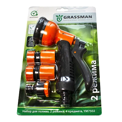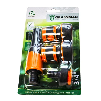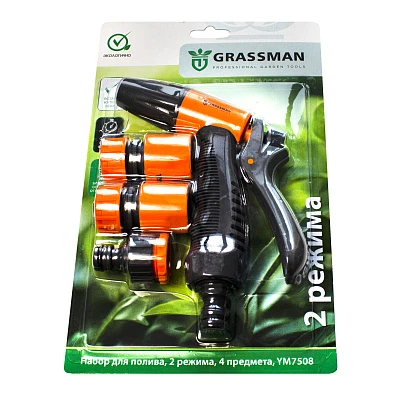 Набор для полива 3/4" ПИСТОЛЕТ 2 РЕЖИМА, 4 предмета GRASSMAN YM5816F (1/24)