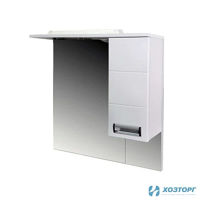 Шкаф-зеркало для ванной ВОЛНА 650 белый правое (без подсветки) 0313 (MDW) (1/1)