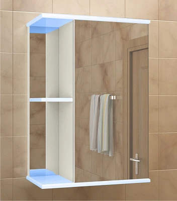Шкаф-зеркало для ванной ВОЛНА 550 белый, левое (без подсветки) 0269 (MDW) (1/1)