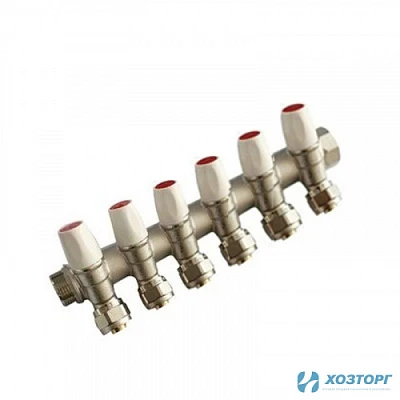 Коллектор с регулирующими вентилями под 45°, 3/4"г/ш х 16ц - 6 вых. MR135N-3/4-C-6 TIM(1/9)