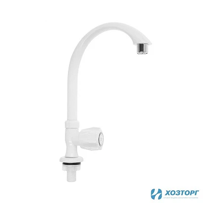 Кран на одну воду с высоким изливом (пластик) 1/2" цвет белый 5149047 (1/100)