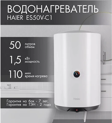 Водонагреватель HAIER ES 50V-A2 (объем 50л, размер В637xШ390xГ400мм,1,5кВт) (1/1)